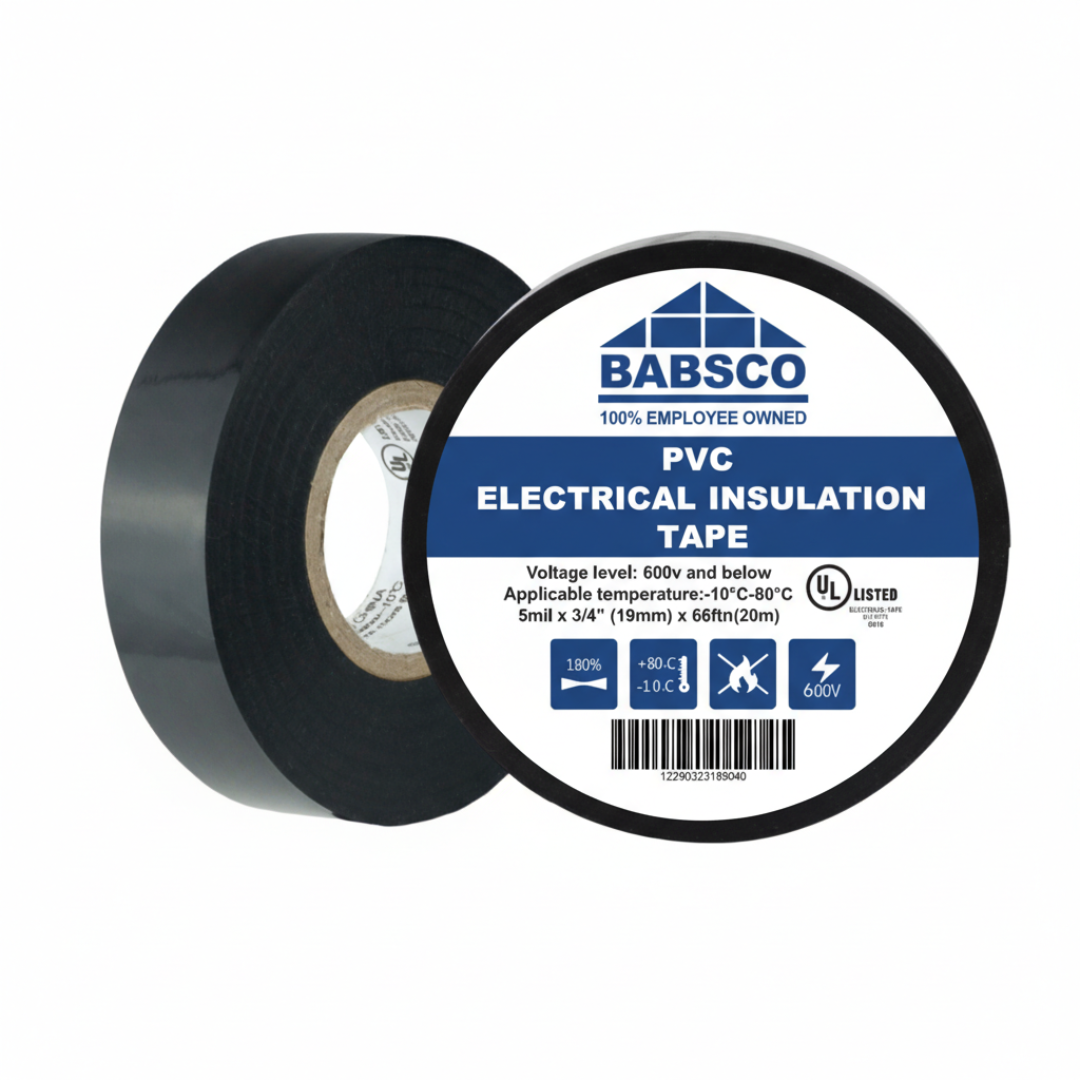 BABSCO black vinyl electrical tape is flexible, easy to apply, and ideal for insulating and protecting wires, circuits, and connections. The durable vinyl offers reliable resistance to abrasion, moisture, and temperature extremes.