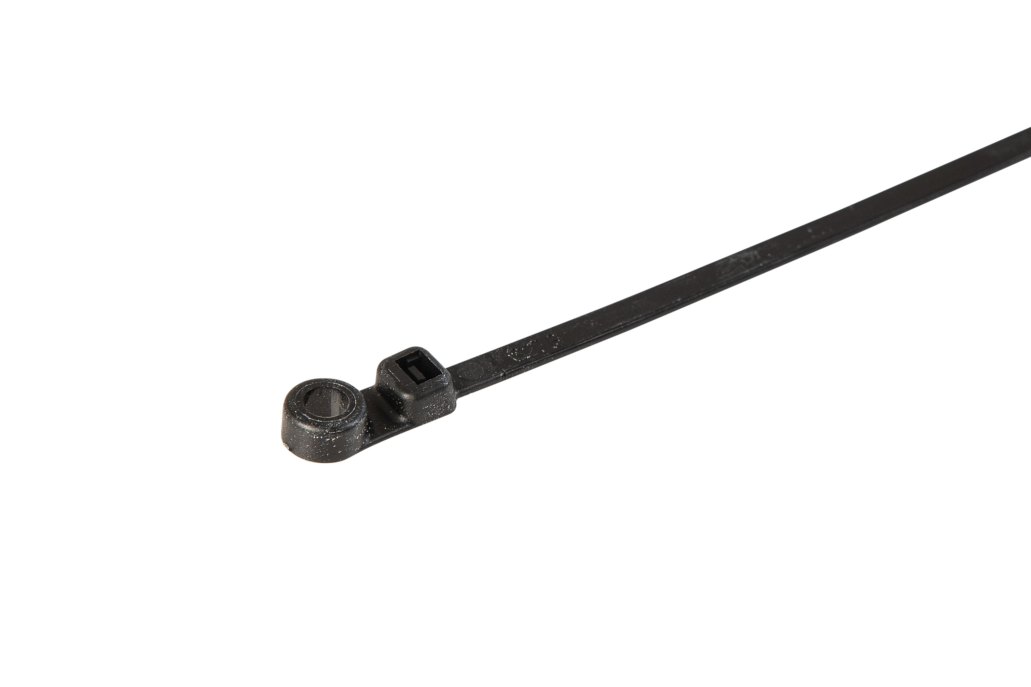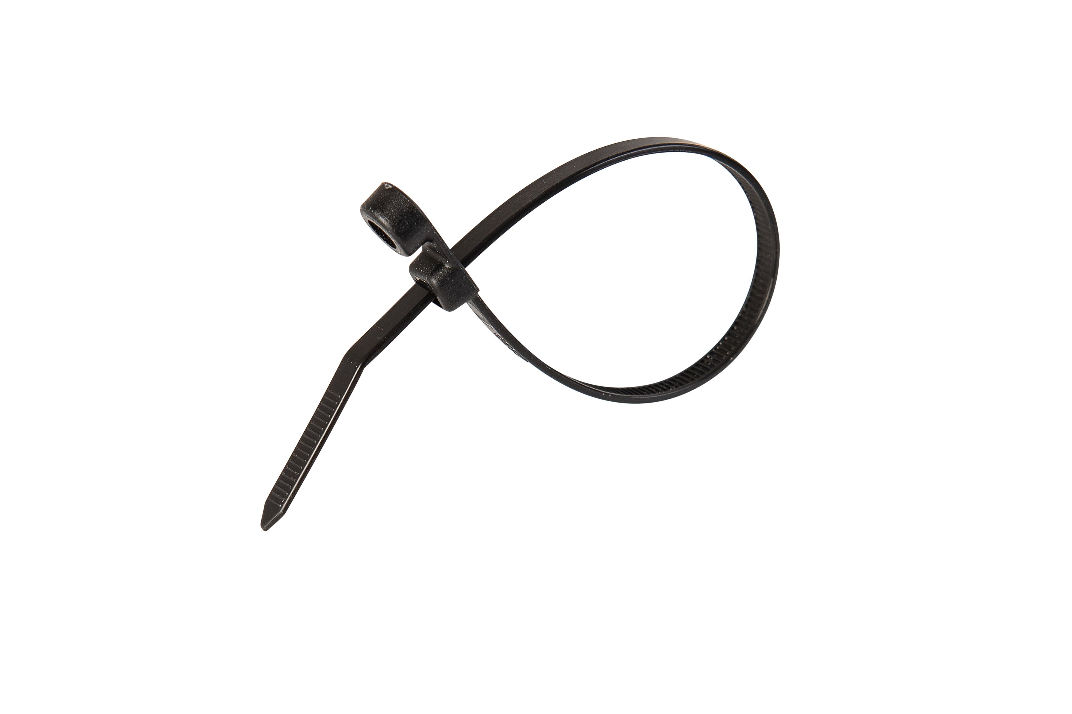 The cable tie can be secured to a panel using a single screw.