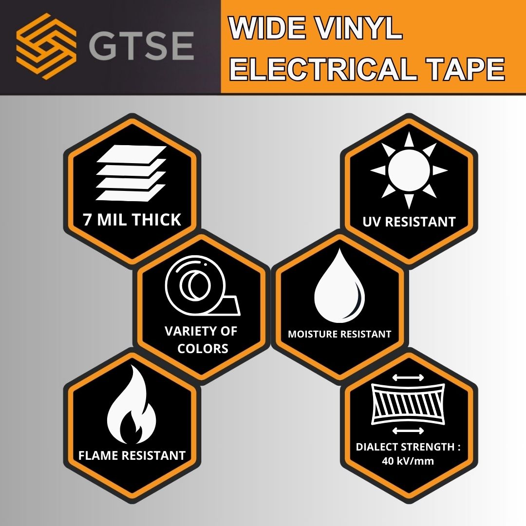 Our triple pack of wide vinyl electrical tape is flexible and easy to apply to wires, circuits, and connections. The premium vinyl material provides long-lasting protection against abrasion, extreme temperatures, and moisture. It can be used for a variety of applications including insulation, protection and fixing.