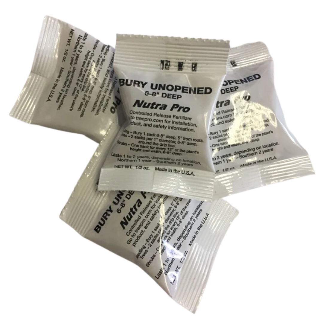 Nutrapro is a controlled-release fertilizer (16-16-16) designed for trees and shrubs. Placed directly in the planting hole, it ensures nutrients reach the roots efficiently. Its micro-porous packaging releases fertilizer gradually as moisture passes through, providing consistent nourishment over time.